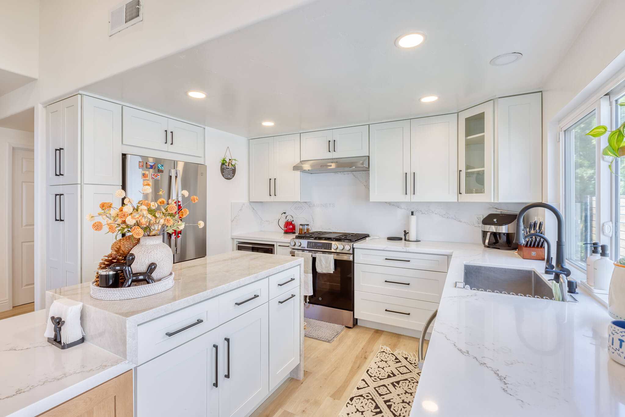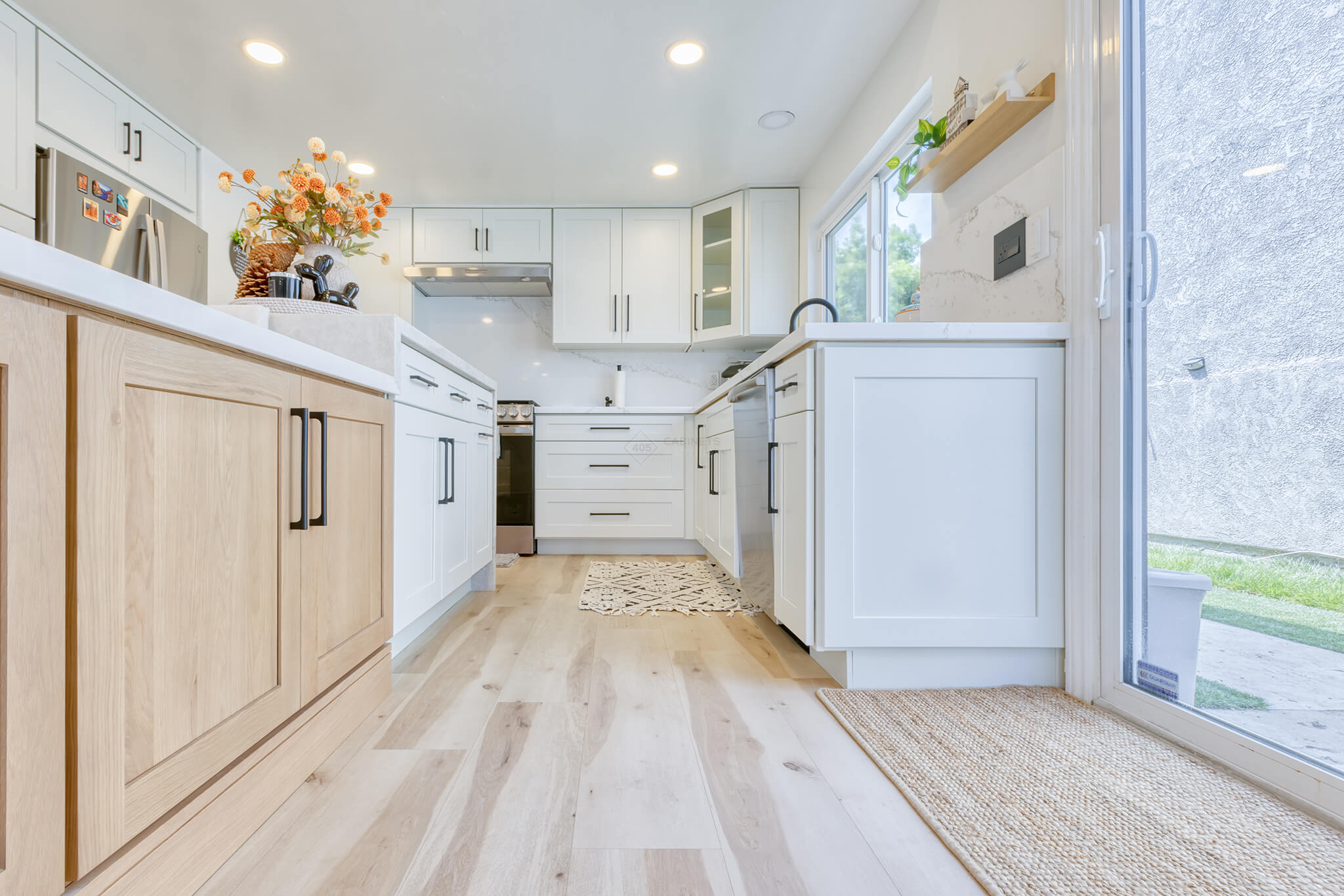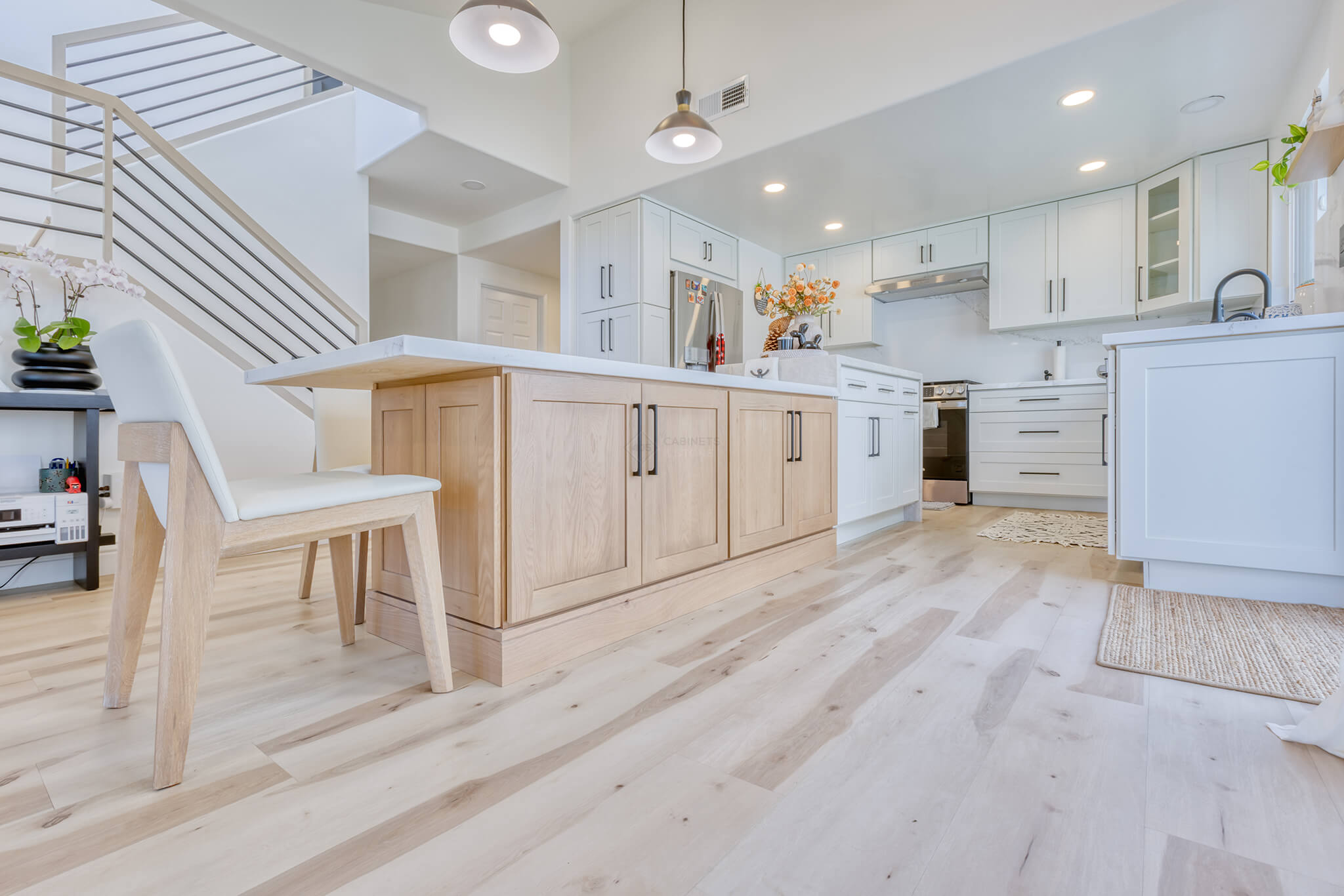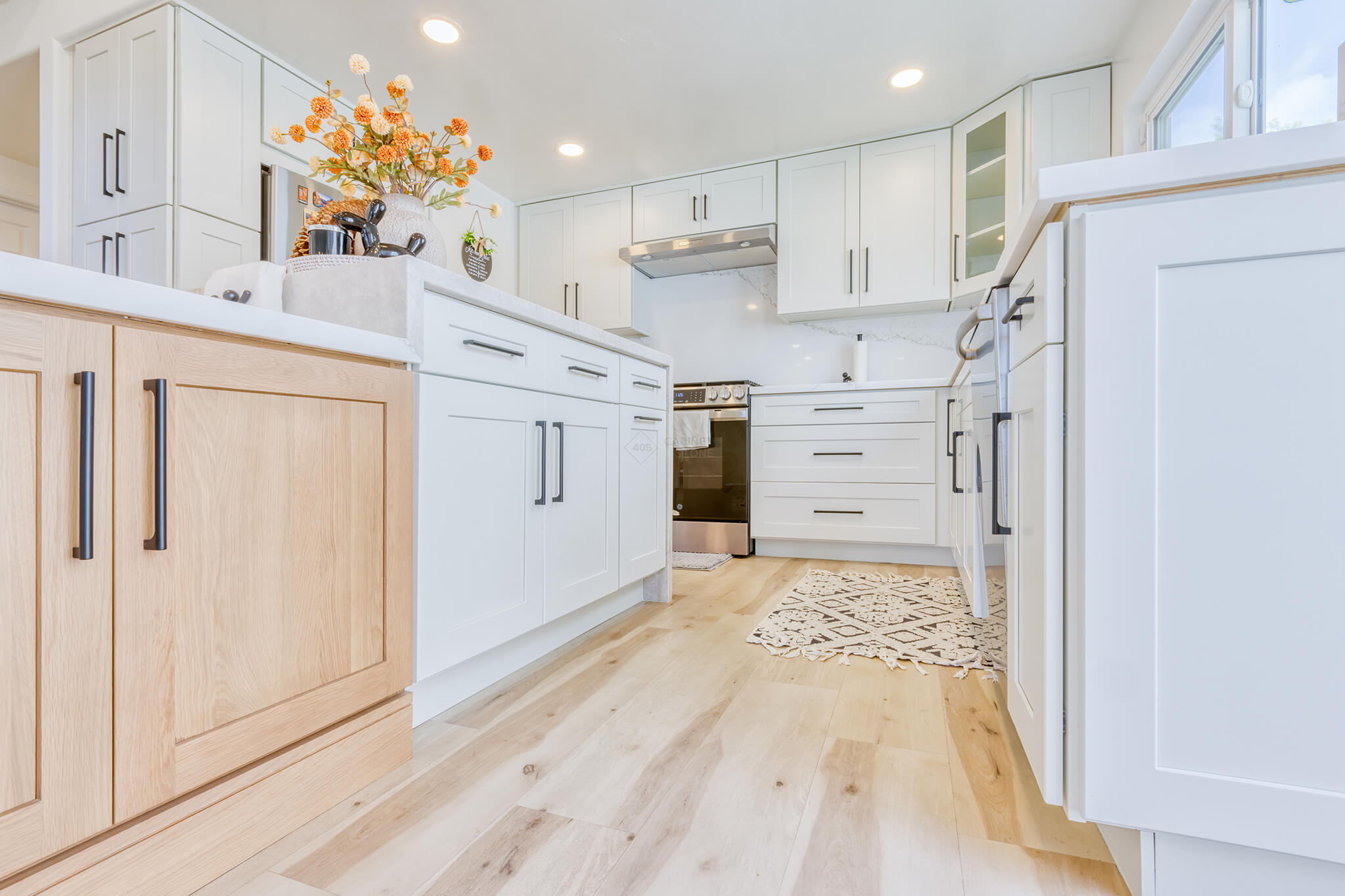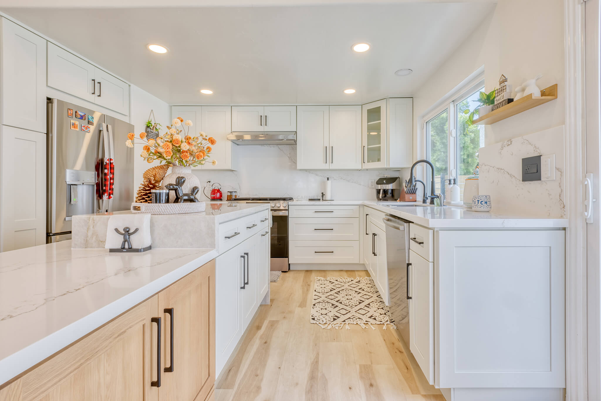 Two-tone kitchen cabinets can work with a variety of kitchen styles. This kitchen is a combination of Asheville Cotton and Whisky Royale.