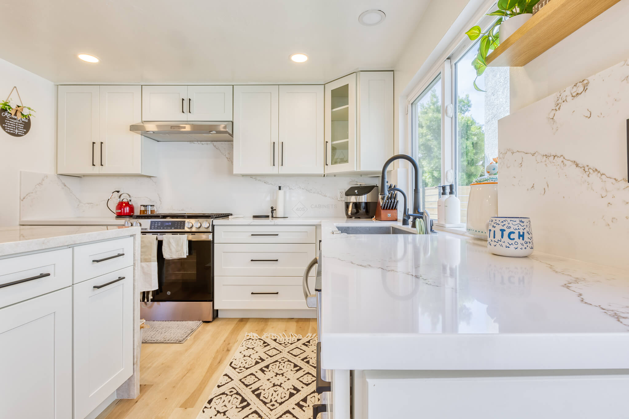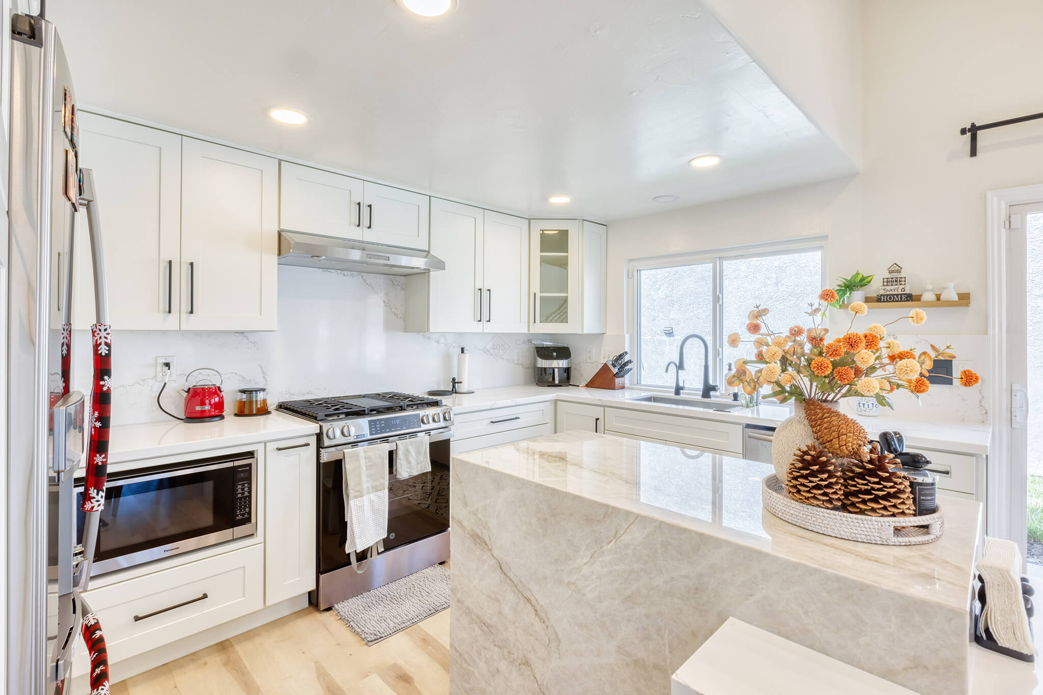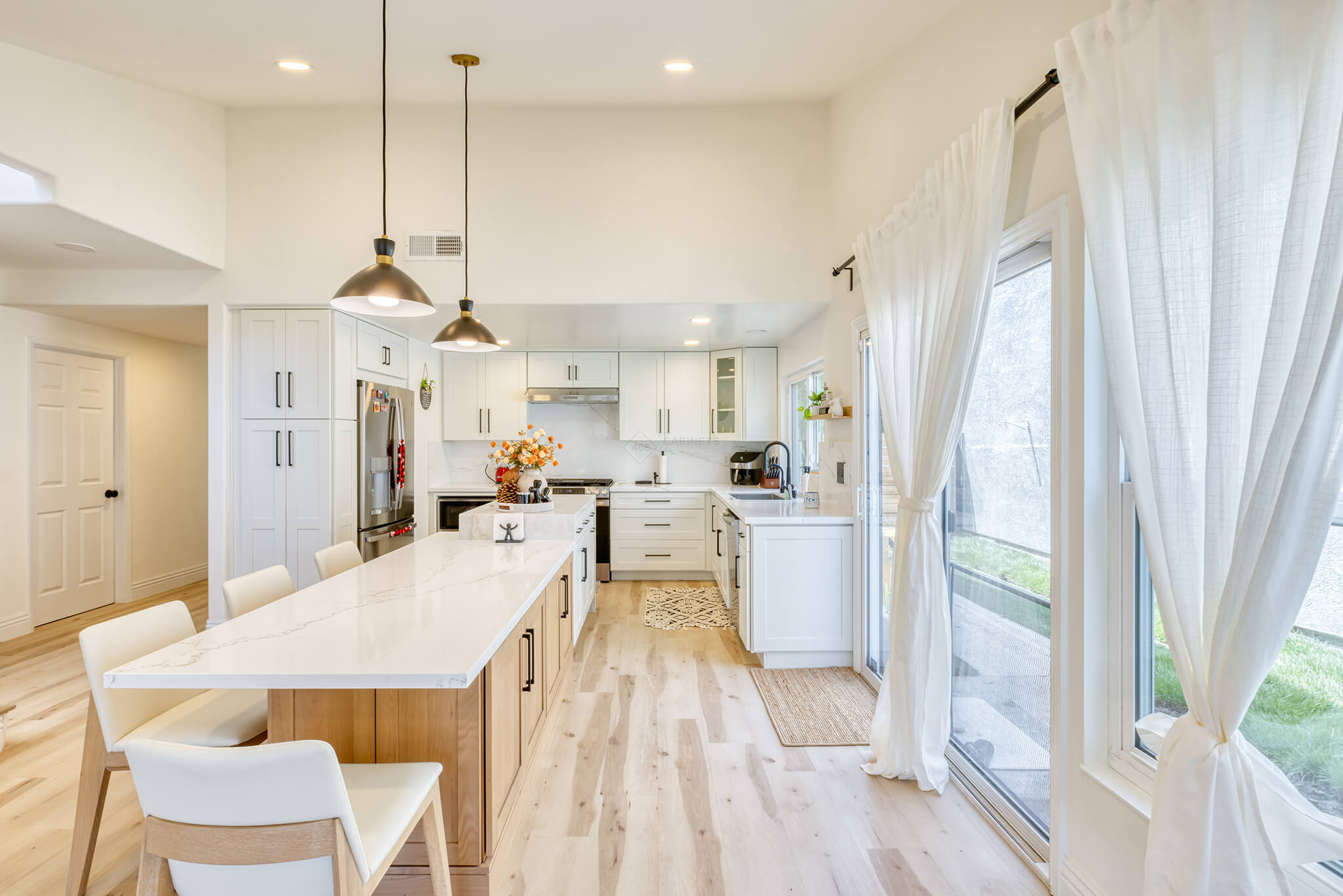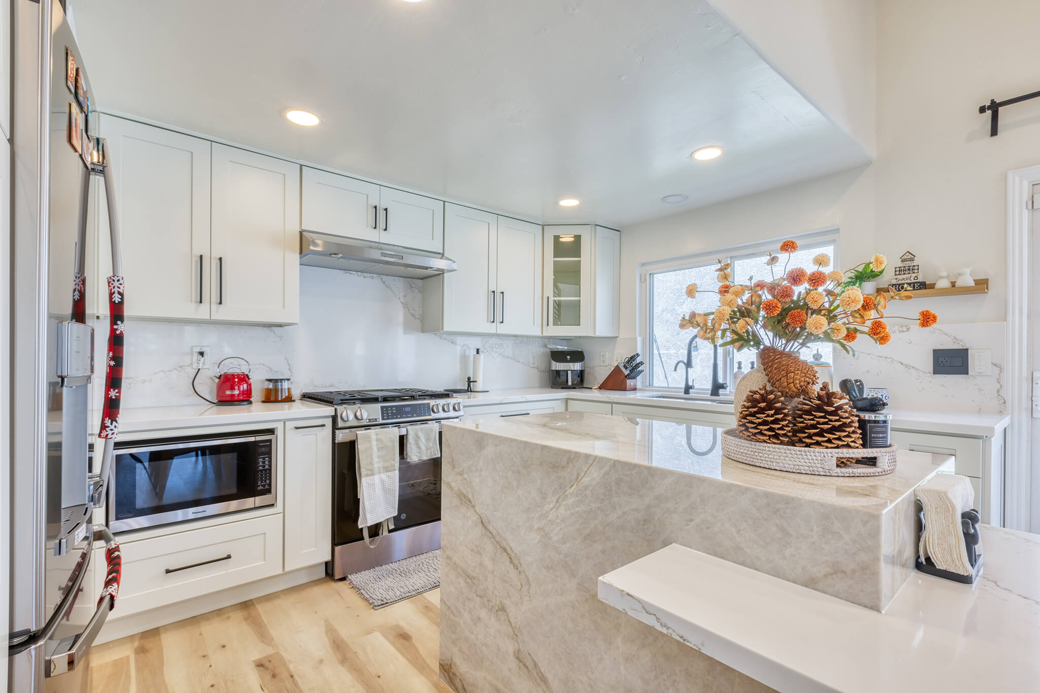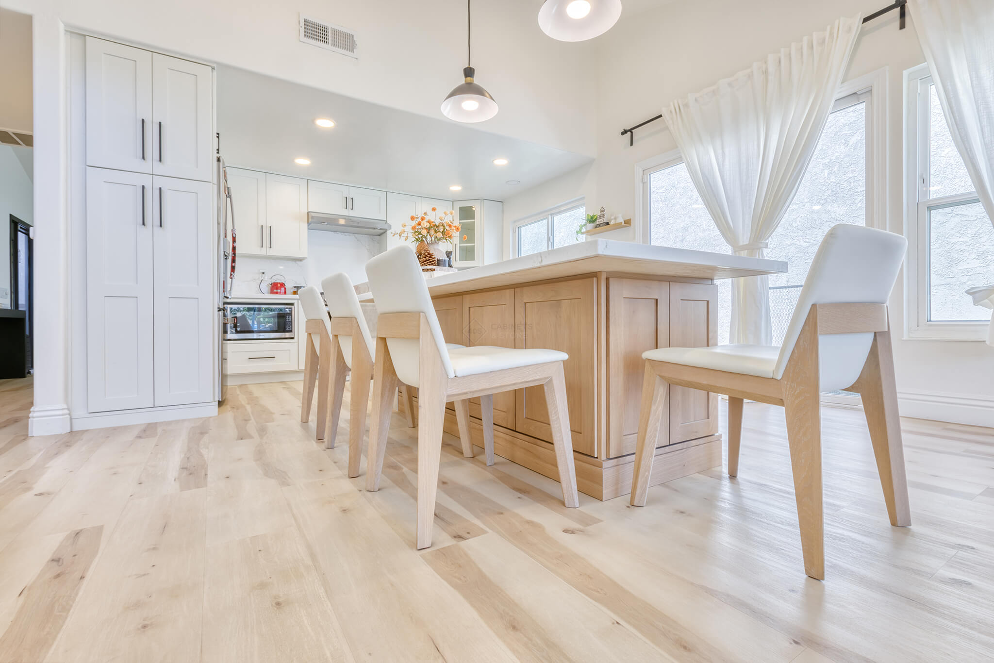Two-tone kitchen cabinets can work with a variety of kitchen styles. This kitchen is a combination of Asheville Cotton and Whisky Royale.