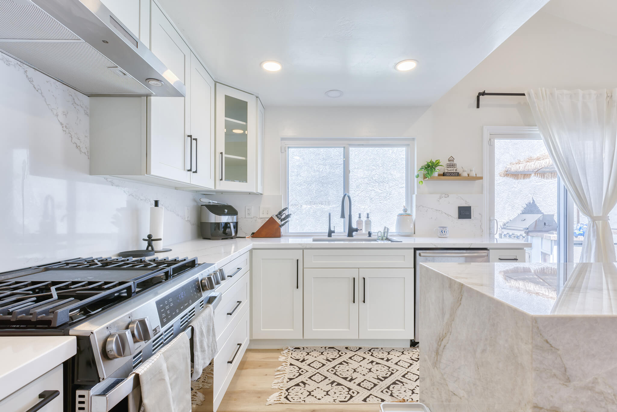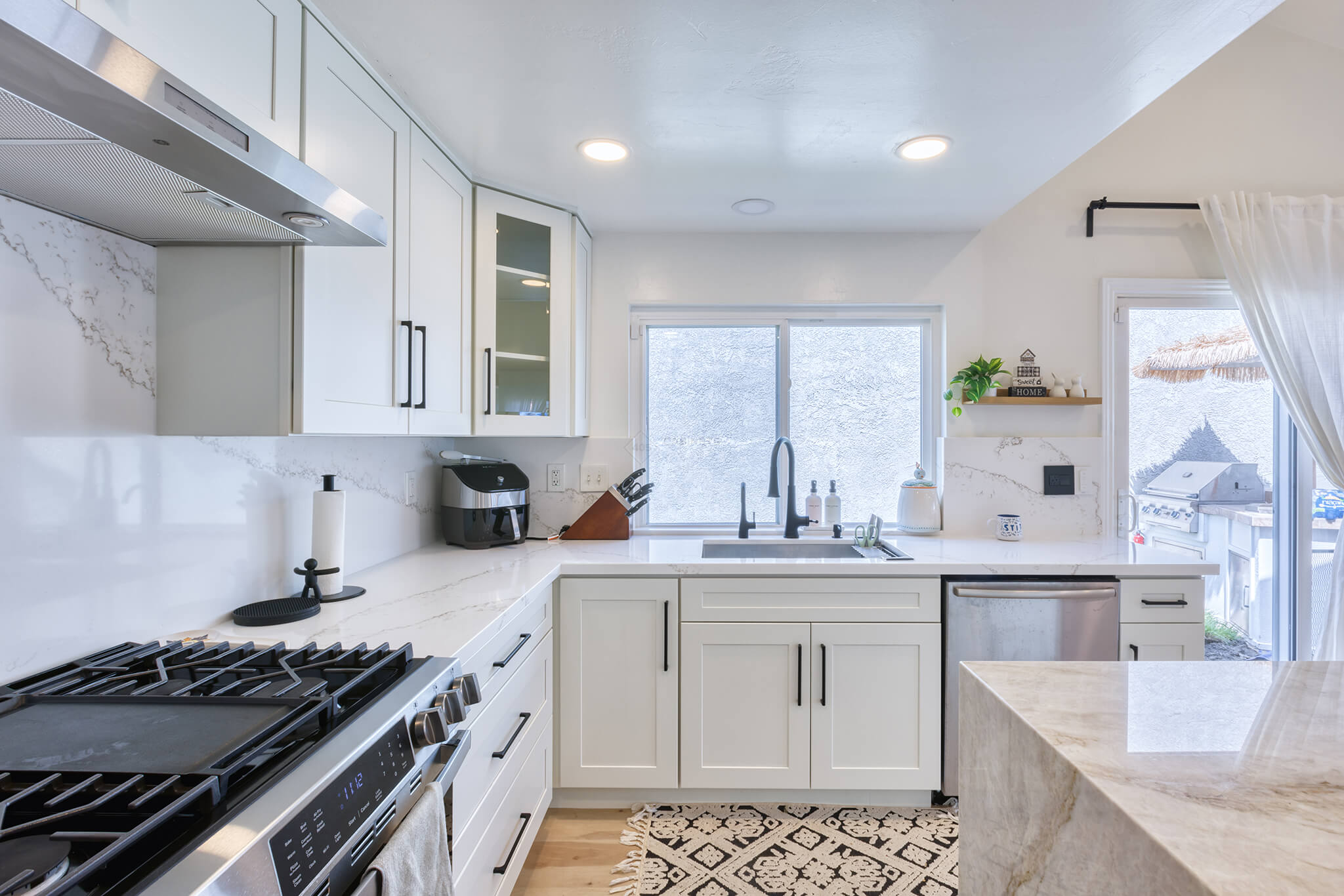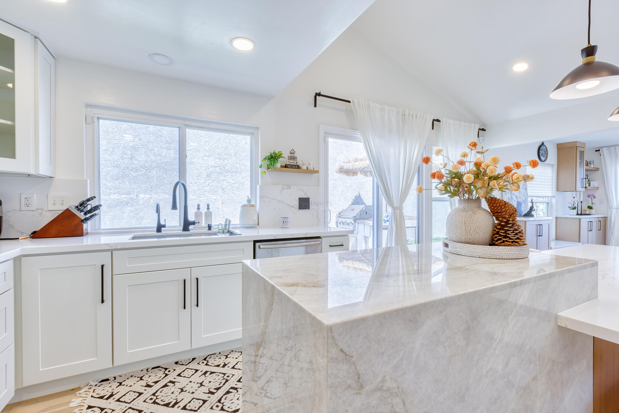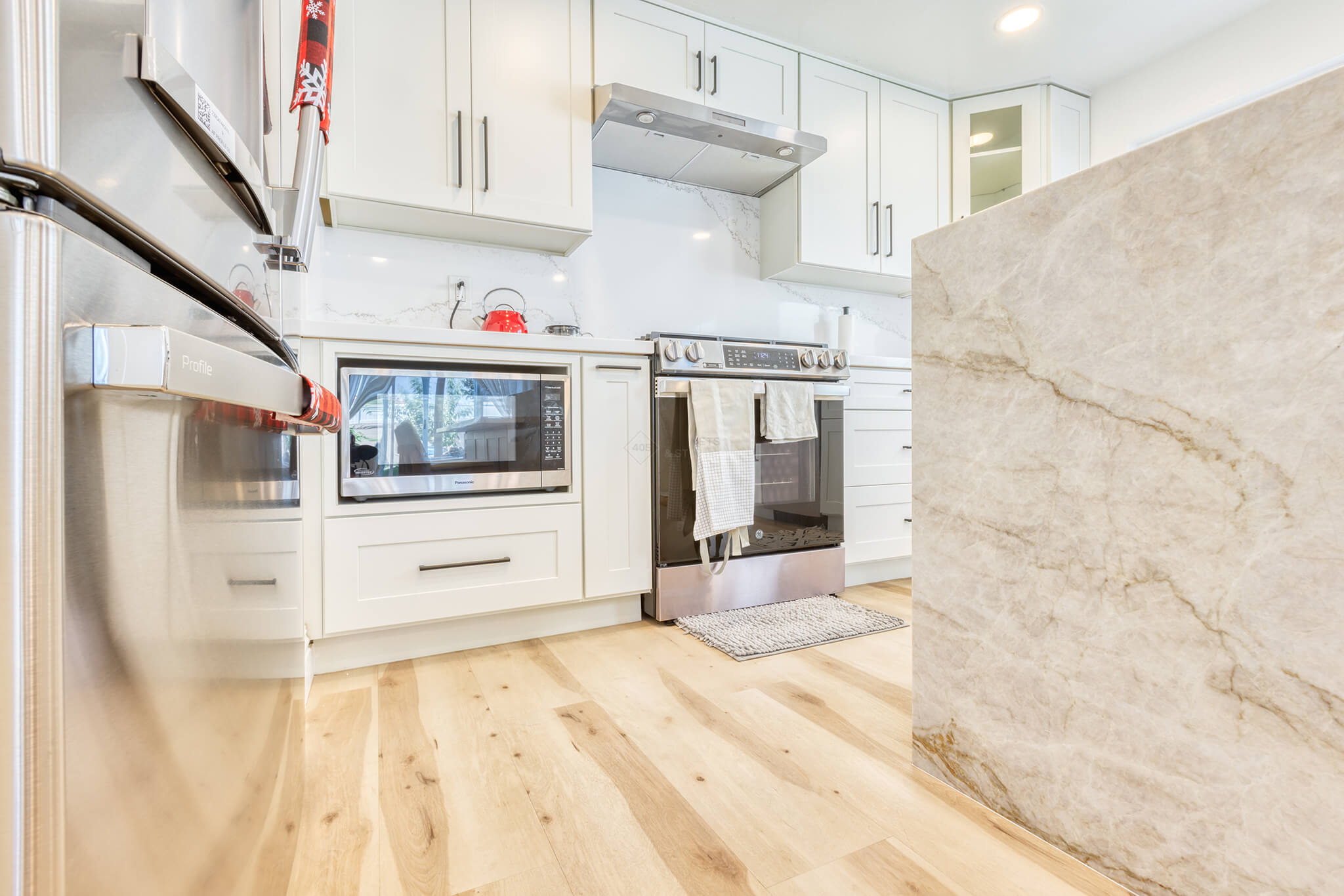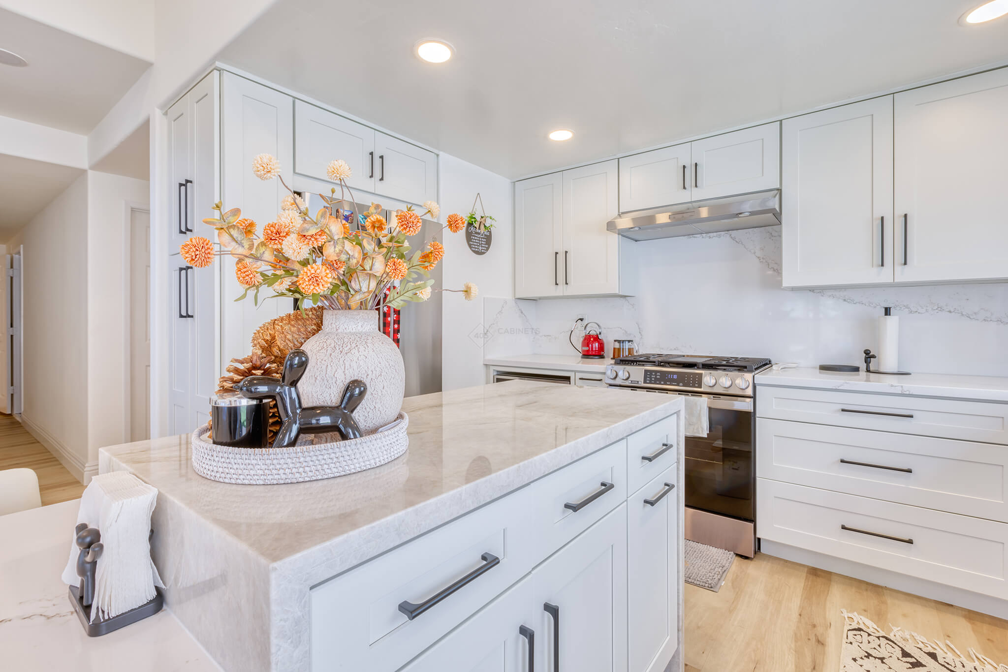 Two-tone kitchen cabinets can work with a variety of kitchen styles. This kitchen is a combination of Asheville Cotton and Whisky Royale.