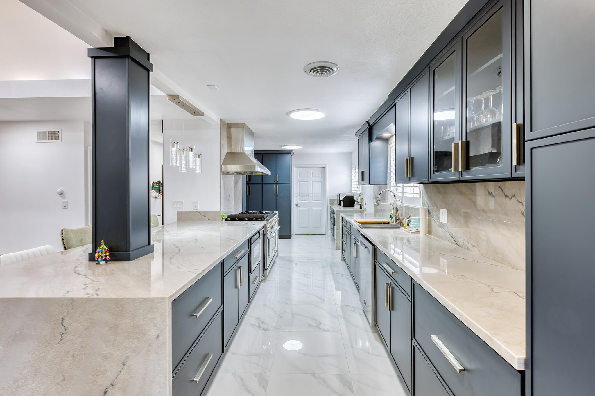 Navo Sleek and modern, these navy blue slim shaker-style kitchen cabinets feature clean lines and a smooth finish, creating a modern yet classic aesthetic. Other Styles Spartan WhiteSavannah SandVenice CremeAsheville CottonFossil NuovoHaven GrayNavoClasséBlooming CottonWhiskey RoyaleEden Spice